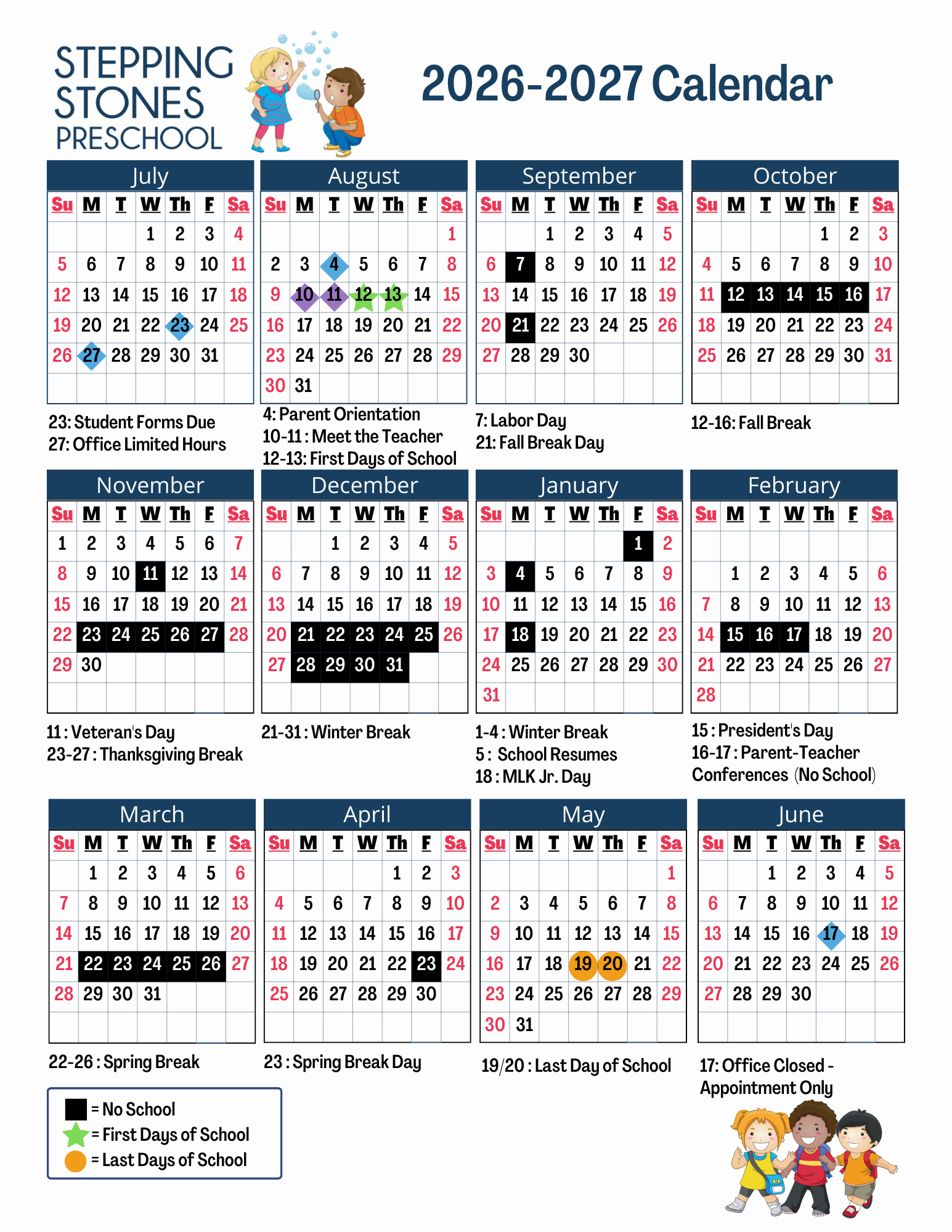 *Please note that dates and events at Stepping Stones Preschool are subject to change. We will notify and adjust as necessary. Thank you for your understanding.