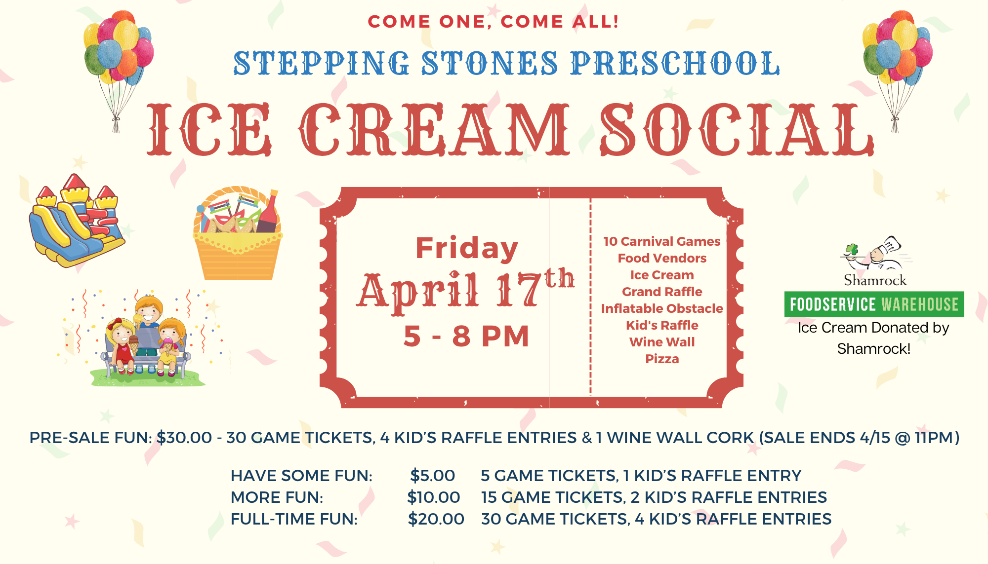 Enjoy colorful scoops of ice cream, fun-filled carnival games for the kids, a festive wine wall for the grown-ups, and don’t miss our grand raffle baskets on display; packed with amazing prizes you won’t want to miss! There’s truly something for everyone.